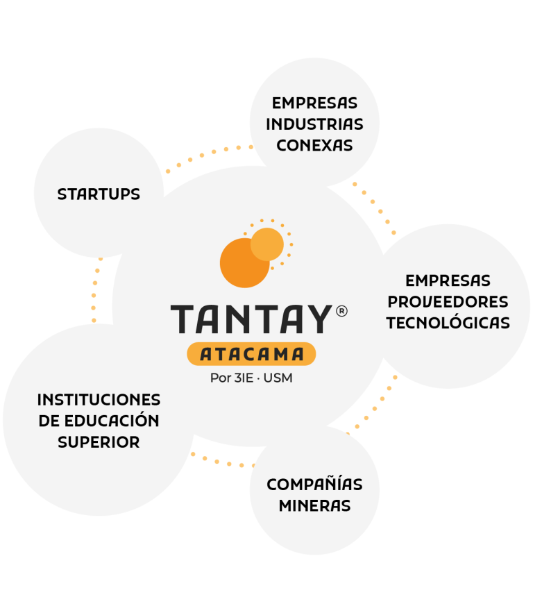 A través de Tantay Atacama® buscamos fomentar la adopción de estas tecnologías mediante el encuentro y articulación entre compañías mineras y empresas de sus industrias conexas como: Agua, Energía, Logística, Transporte y Puertos; con empresas proveedoras tecnológicas, startups, instituciones de educación superior, centros de I+D+i, y expertos de la industria minera.